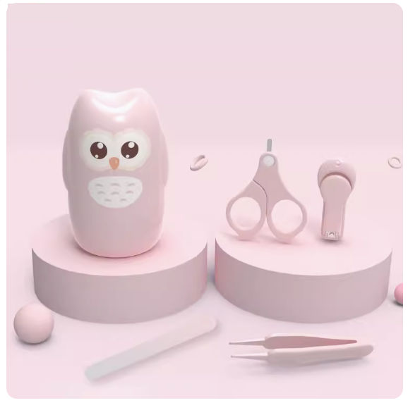爆款寶寶指甲剪套裝(卡通貓頭鷹兒童指甲護理套裝-粉色)