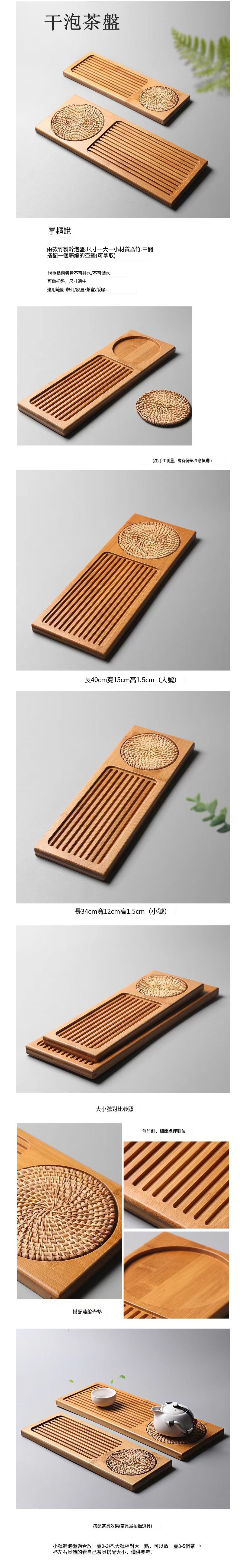 爆款竹製長方托盤竹茶盤(小號茶盤34*12cm+藤墊)