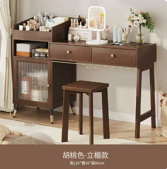 熱推楠竹實木家具 書枱 電腦桌 化裝枱 組合款【透明門款】胡桃色