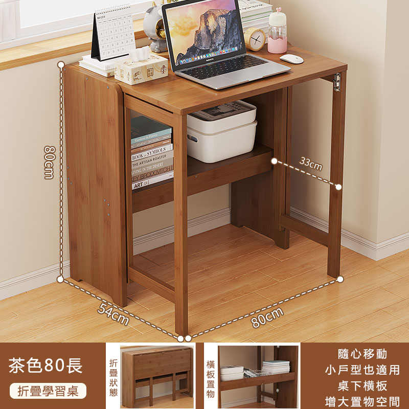 熱推楠竹實木家具 折叠桌 化裝枱 電腦桌 【80x54x80cm】原色
