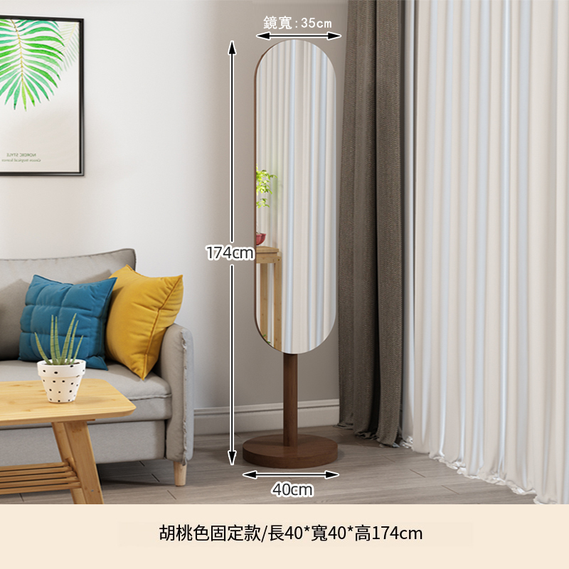 熱推楠竹實木家具 全身鏡+衣帽架 掛衣架 試衣鏡子【平底款】胡桃色
