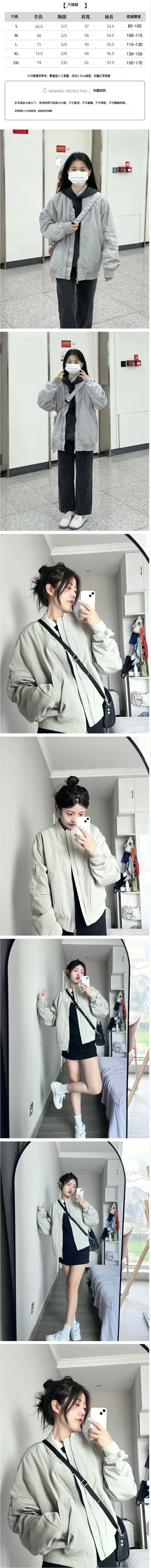 爆款棒球服女拉鍊開衫夾克外套(淺灰色夾棉加厚)(S/M/L/XL/2XL下單後與客服聯繫發貨的尺碼)