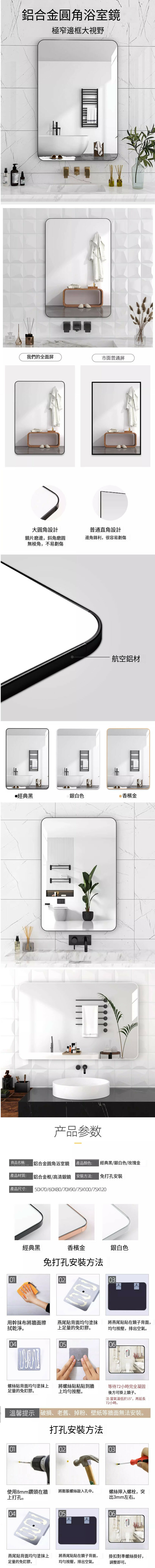 爆款浴室免打孔鏡子(銀白色40*60cm(橫豎可掛))