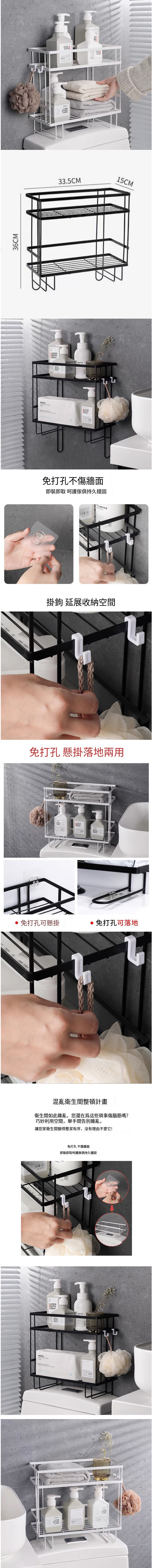 爆款衛生間免打孔多功能雙層置物架(雙層馬桶架-黑色)