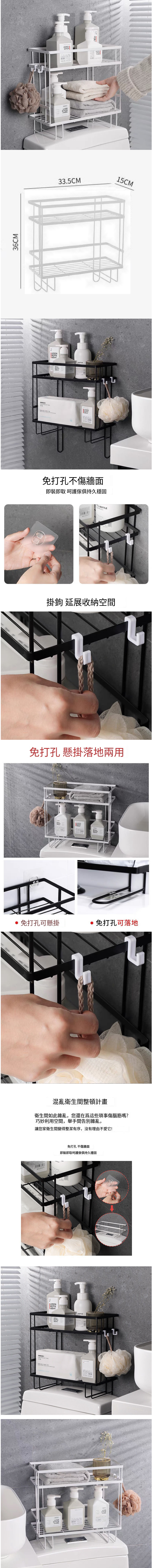 爆款衛生間免打孔多功能雙層置物架(雙層馬桶架-白色)