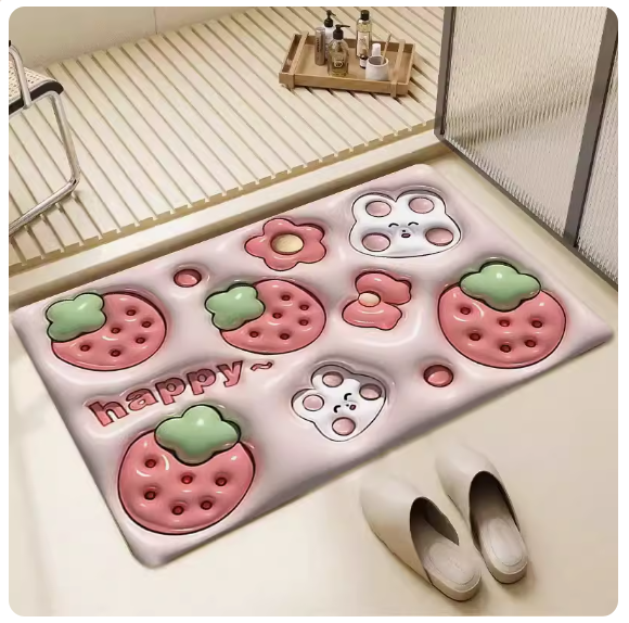 爆款衛生間吸水防滑地墊(草莓兔【矽藻泥】)【尺寸:50x80cm】