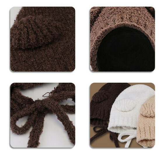 爆款小熊耳朵毛線系繩款針織帽(E-429黑色)