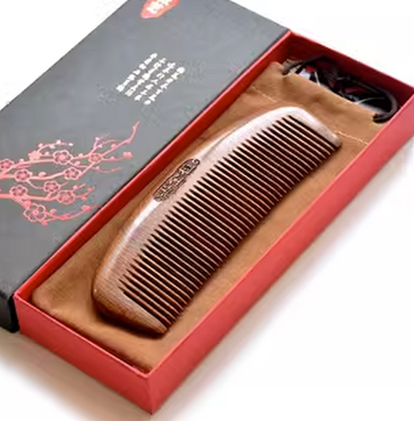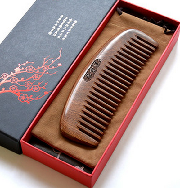 爆款黑金檀木梳子(密齒(禮盒+布袋)約16釐米)