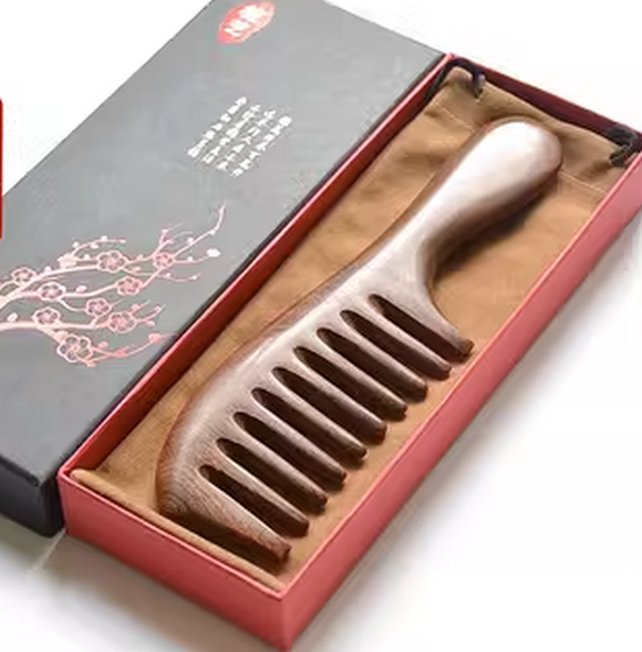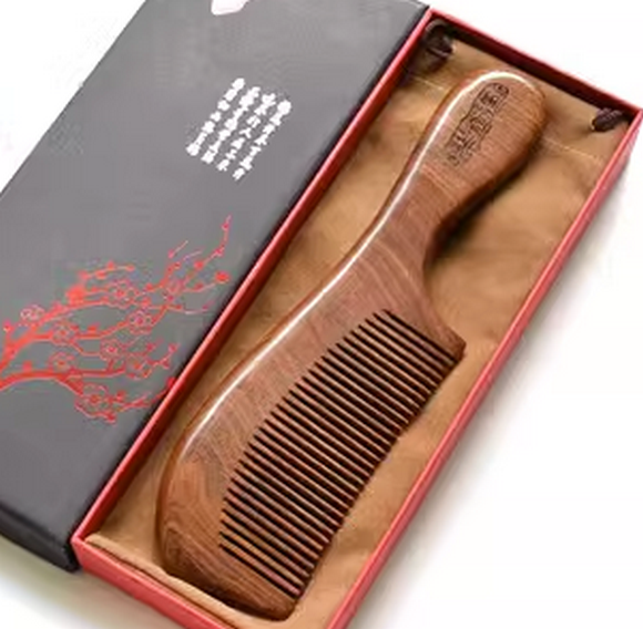 爆款黑金檀木梳子(密齒(禮盒+布袋)約20釐米)