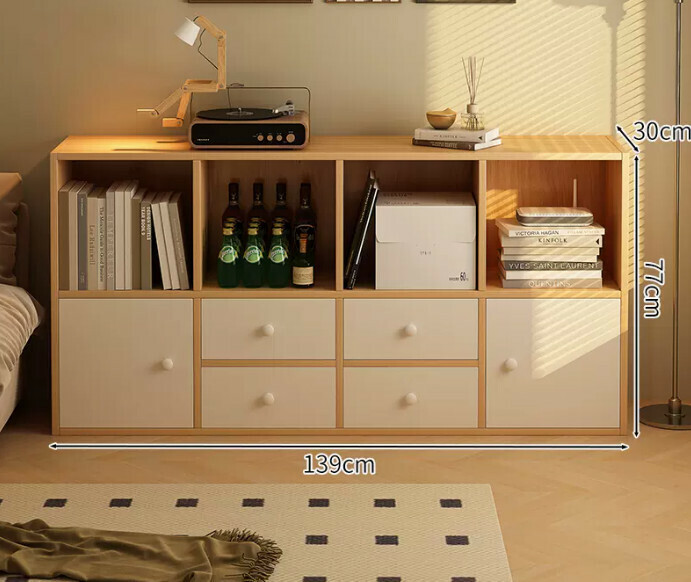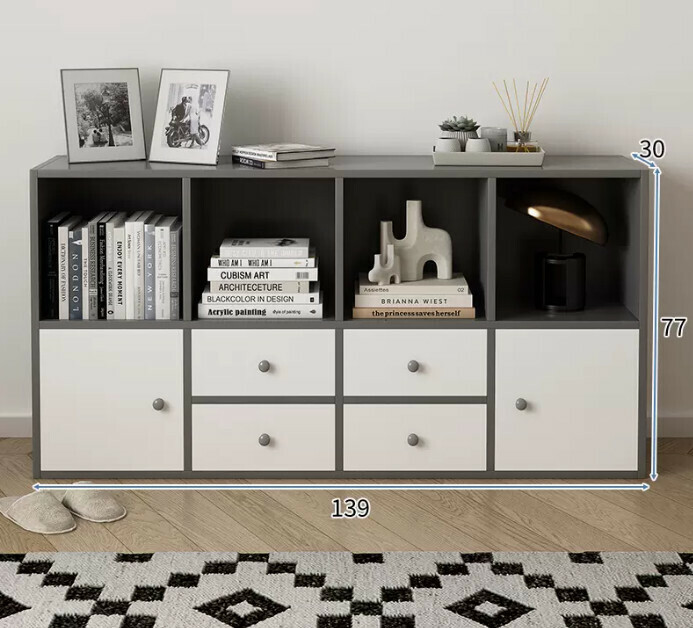 爆款書櫃書架置物架(八格雙門四抽款原木色)