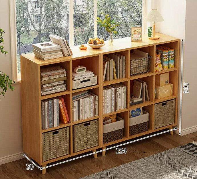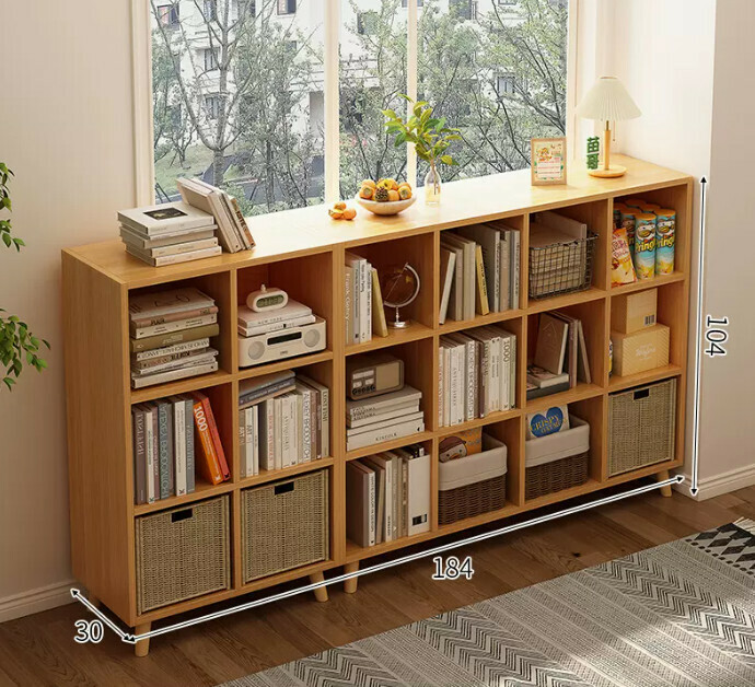 爆款書架置物架落地書櫃(帶腿六格豎款+九格暖白色)