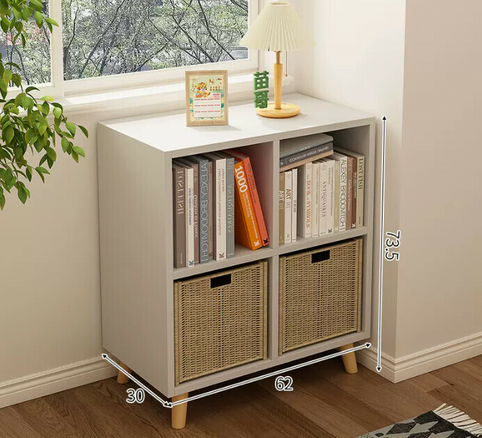爆款書架置物架落地書櫃(帶腿四格原木色)