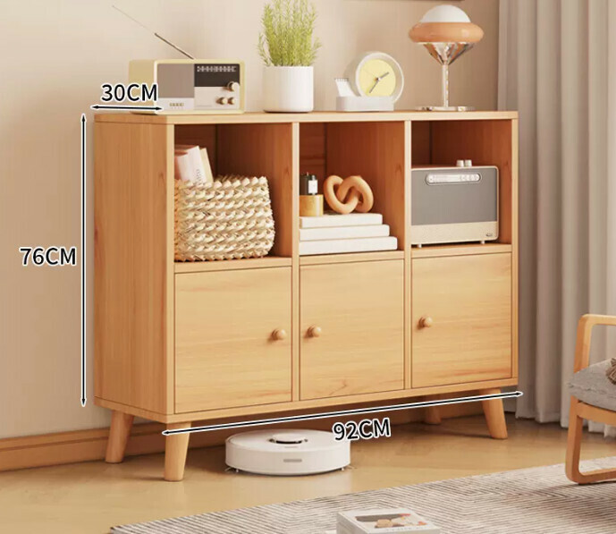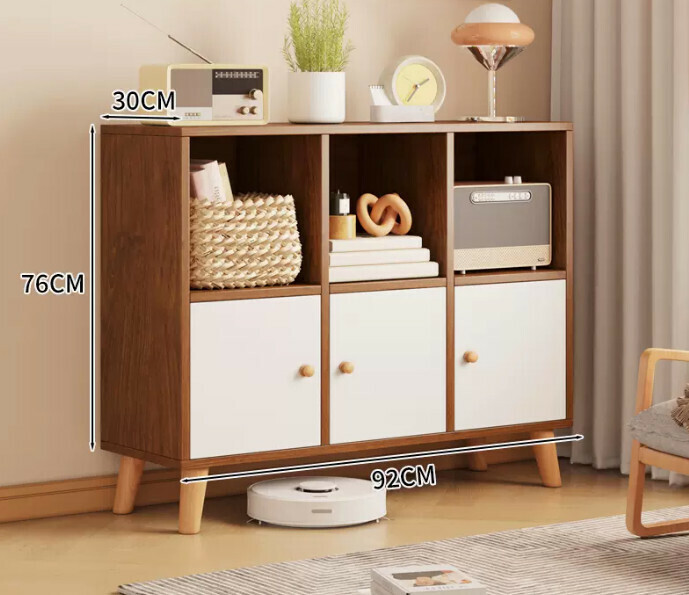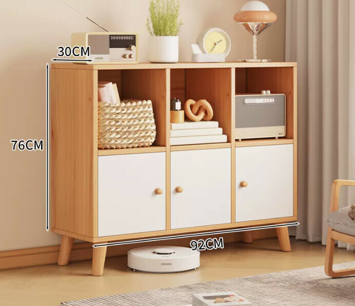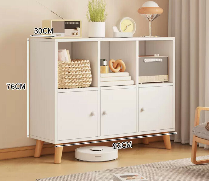 爆款書架置物架落地書櫃(帶腿三格三門暖白色)
