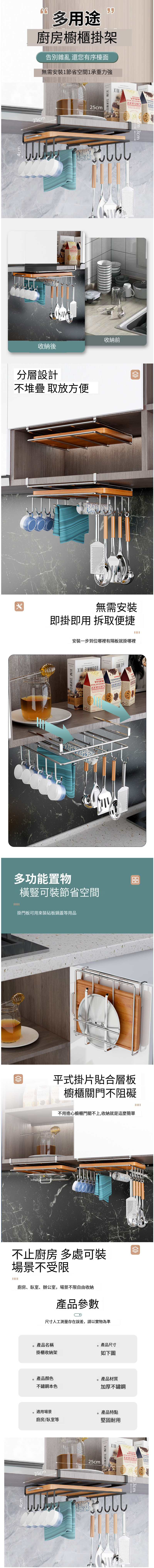 爆款櫥櫃不鏽鋼免打孔鍋蓋架 菜板放置架 多功能廚房置物架(黑色-帶挂鉤)