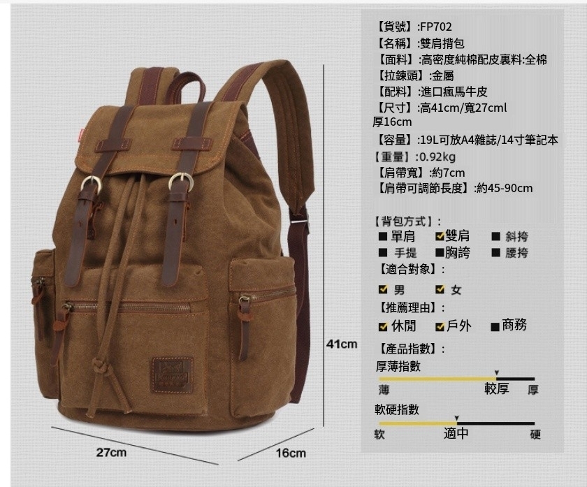 熱推男女同款帆布雙肩包 手提電腦包 背囊【灰色】