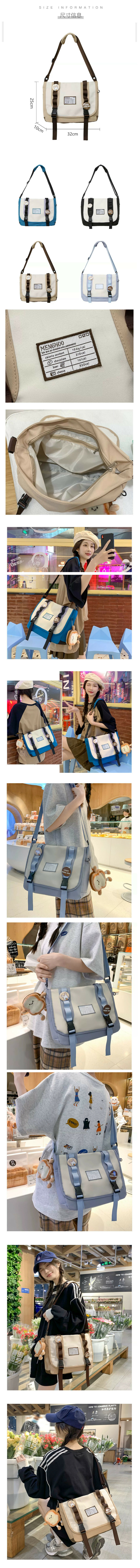 爆款帆布包文藝布袋斜挎包 大容量單肩背包(克萊因藍【自帶2個徽章+麵包人掛件】)