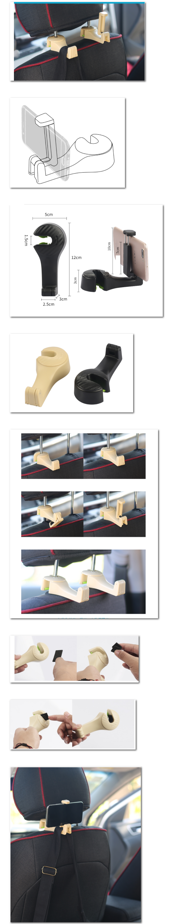 爆款汽車掛鉤椅背掛鉤帶手機支架鎖釦款(米黃)