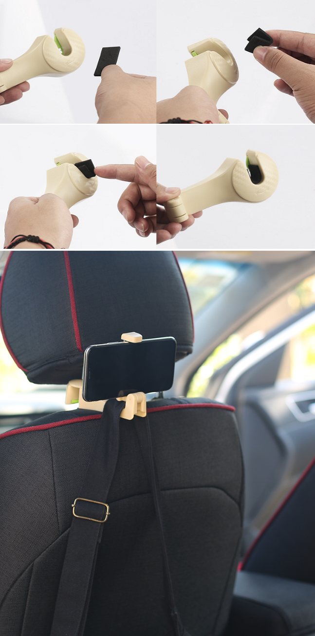 爆款汽車挂鈎(帶手機支架鎖扣款【米黃色】)