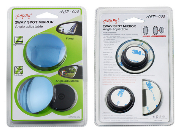 爆款汽車用後視鏡/輔助小圓鏡【對裝】無邊框+360調節+藍色柔光玻璃