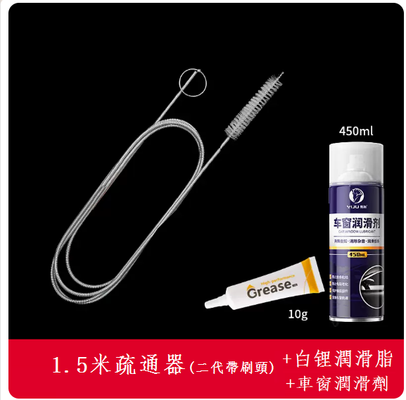 爆款汽車天窗排水孔疏通器(1.5米疏通器【二代帶刷頭】+毛巾+車窗潤滑劑)