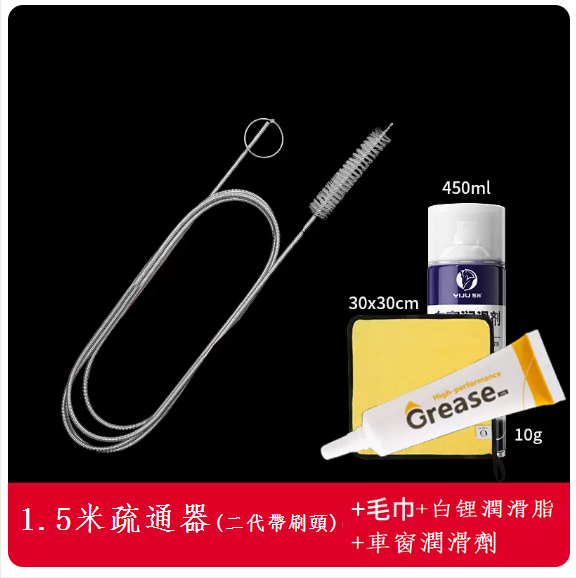 爆款汽車天窗排水孔疏通器(1.5米疏通器【二代帶刷頭】+白锂潤滑脂+毛巾+車窗潤滑劑)