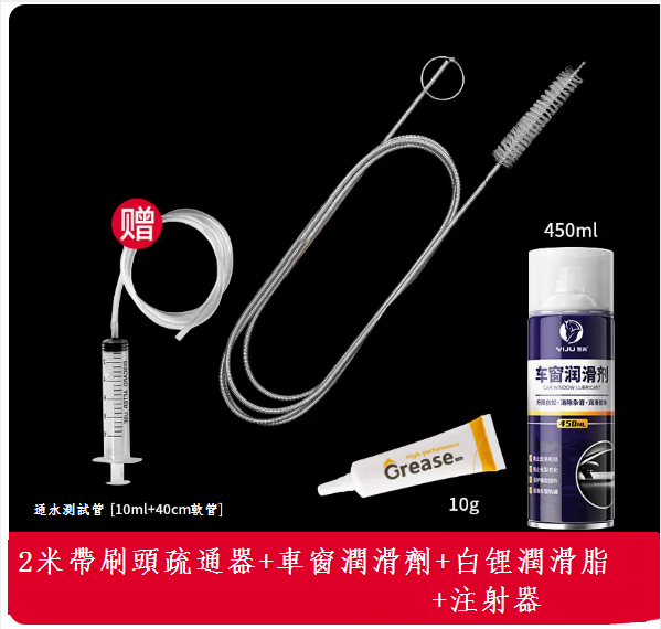 爆款汽車天窗排水孔疏通器(2米疏通器【二代帶刷頭】+白锂潤滑脂+車窗潤滑劑)