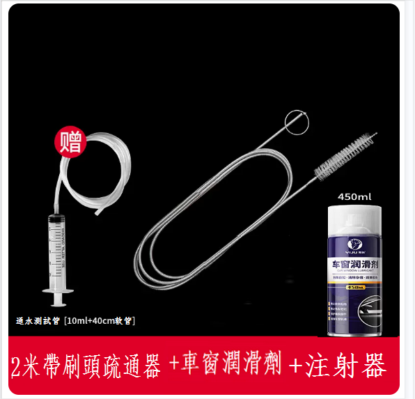 爆款汽車天窗排水孔疏通器(2米疏通器【二代帶刷頭】+車窗潤滑劑)