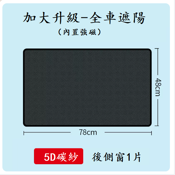 爆款汽車遮陽簾(5D碳紗-磁吸後側窗1片)