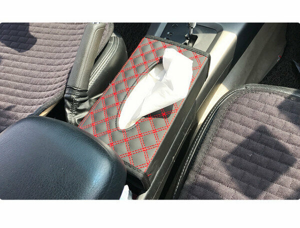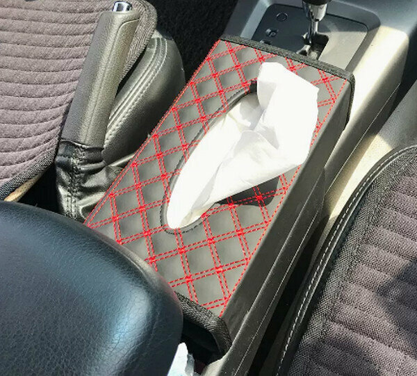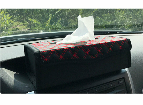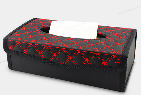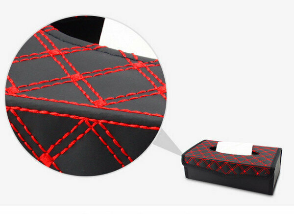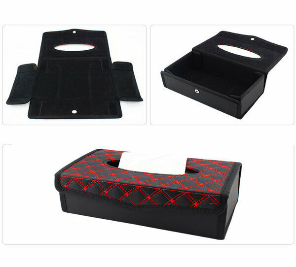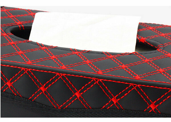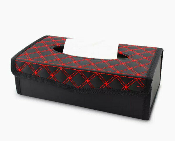 爆款車載紙巾盒-黑色紅線款-折疊款