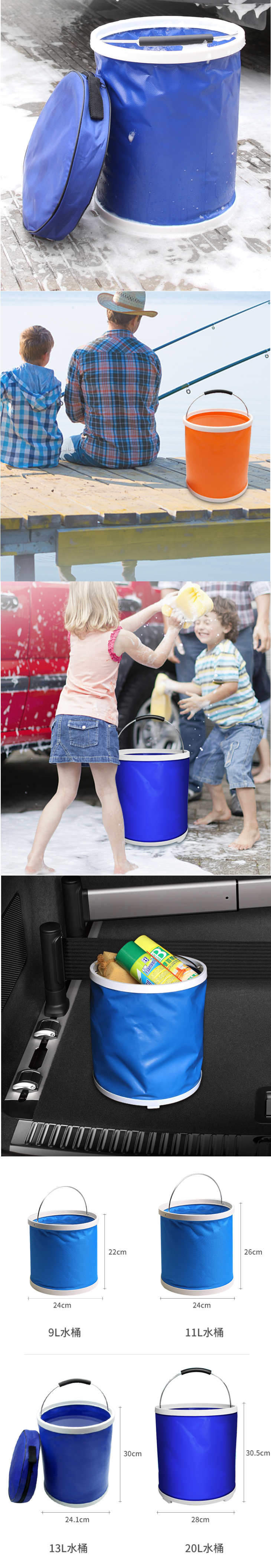爆款【洗車三件套】便攜式洗車折疊水桶 (藍色 11L 水桶+海綿+毛巾 )
