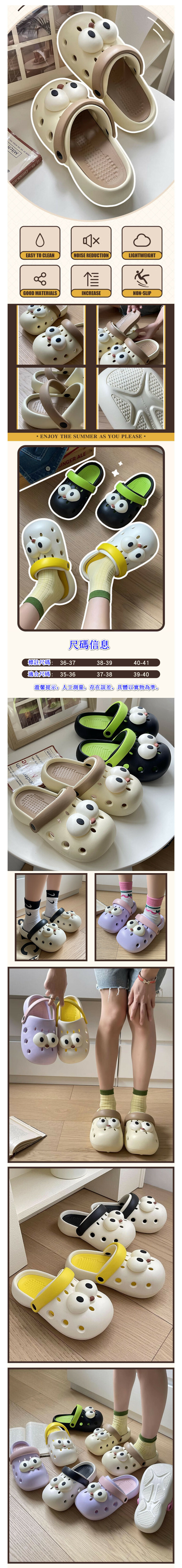 爆款卡通可愛厚底洞洞鞋【粉紫色(立體大眼睛配飾)】(尺碼:36-41)【下單後請聯絡客服確認發貨尺碼】