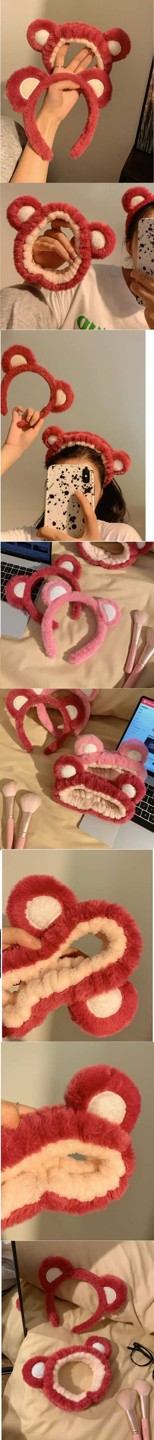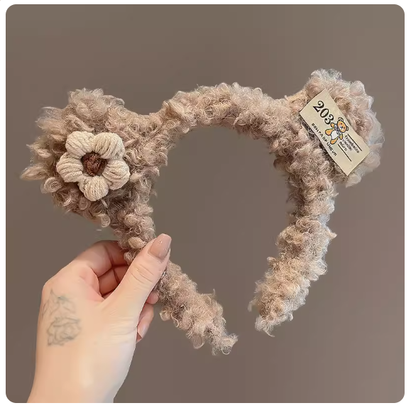爆款卡通毛絨小熊發箍(花花熊淺咖)