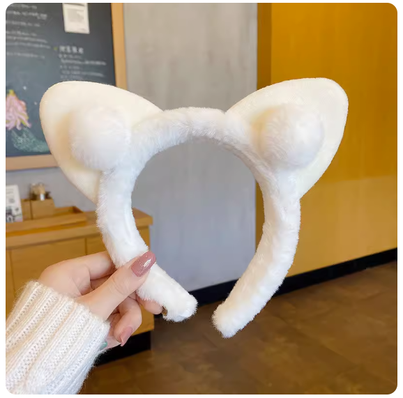 爆款卡通毛絨小熊發箍(球球貓耳朵白色)