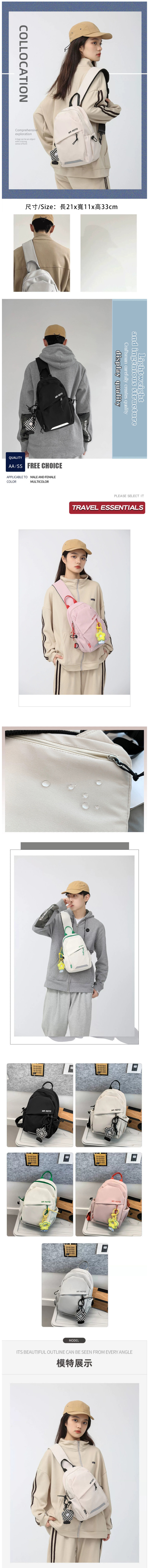爆款休閒斜挎包 運動背包戶外單肩包(黑色【帶格子小花掛件】)