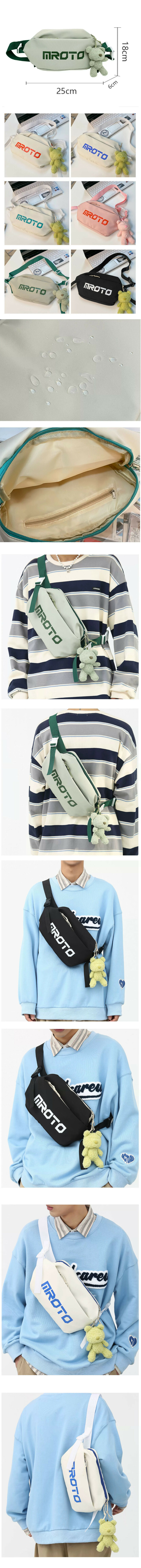 爆款休閒斜挎包 運動背包戶外單肩包(綠色【帶豆綠色無臉熊掛件】)