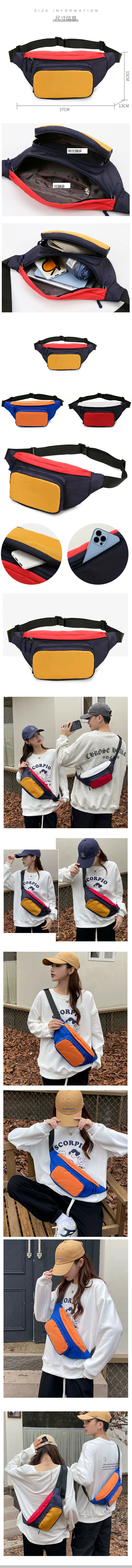 爆款休閒斜挎包 運動背包戶外單肩包(淺藍配橘)