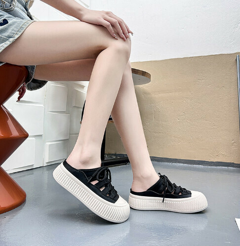 爆款休閒一腳蹬小白鞋(黑色)【35-40碼】【下單後聯絡客服確認發貨尺碼】