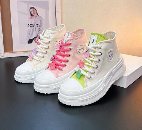 爆款休閒厚底透氣帆布鞋(米綠色)【35-40碼】【下單後聯絡客服確認發貨尺碼】