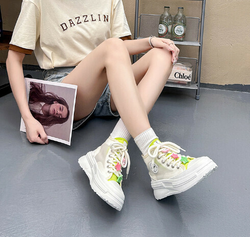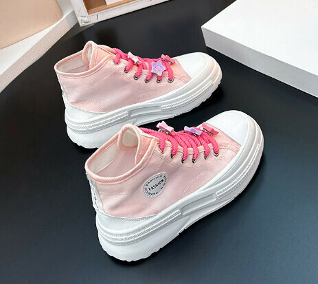 爆款休閒厚底透氣帆布鞋(粉色)【35-40碼】【下單後聯絡客服確認發貨尺碼】