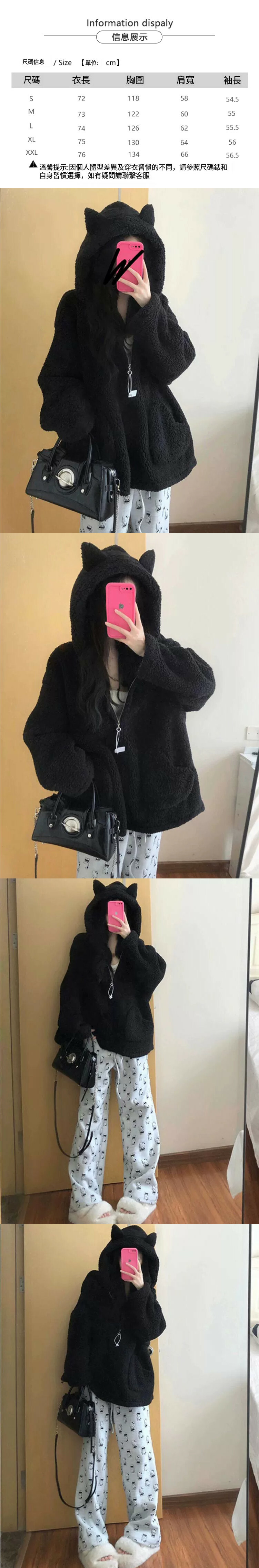 爆款貓耳朵棉服(黑色)(S/M/L/XL/2XL下單後與客服聯系發貨的尺碼)