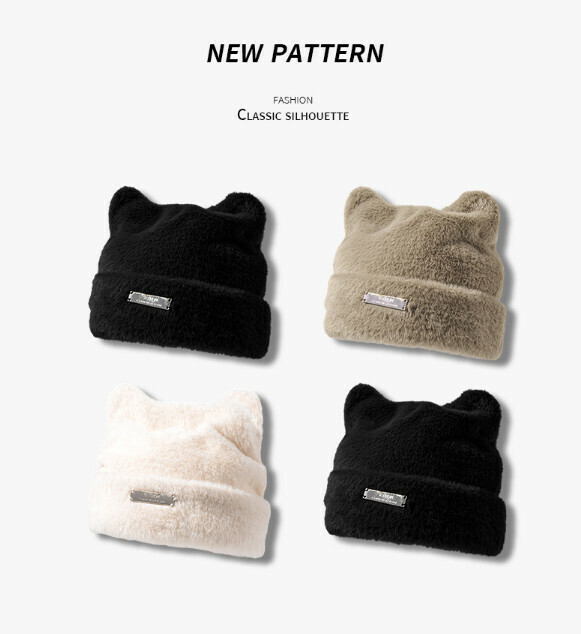 爆款貓耳朵護耳針織帽(A-405CHT米白色)
