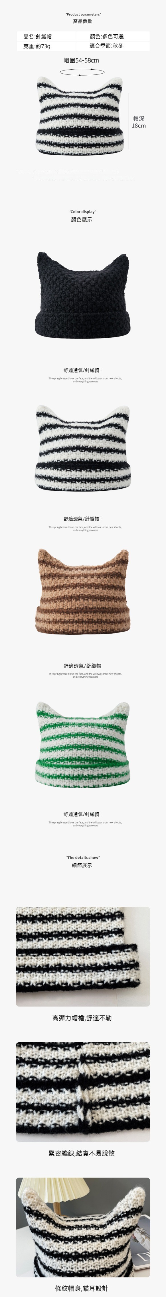爆款貓耳朵條紋針織帽(A-396黑耳朵)