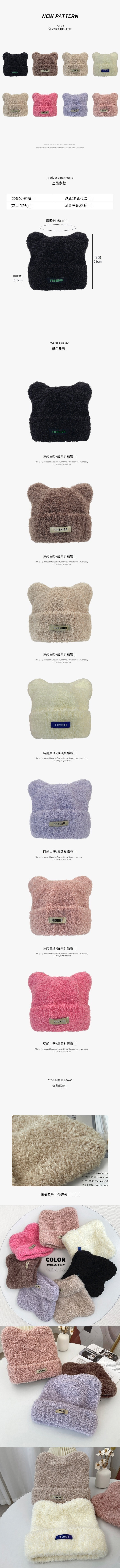 爆款貓耳朵羊羔毛針織帽(A-457CHT米色)