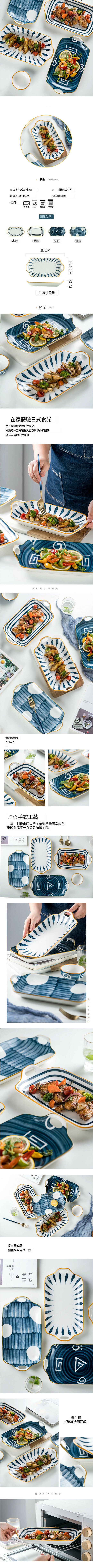爆款陶瓷雙耳烤盤長方盤家用魚盤菜盤早餐盤子烘焙盤(雙耳長方盤(毛草))