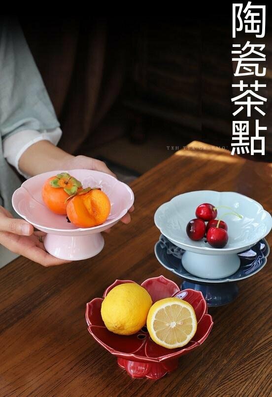 爆款陶瓷高腳分離式瀝水果茶點盤(蓮花郎紅)