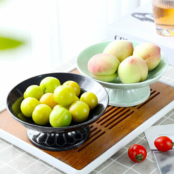 爆款陶瓷高腳果盤(孔雀釉黑大號)