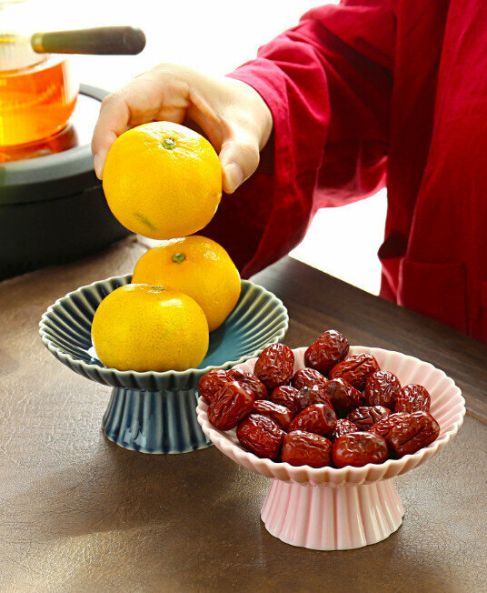 爆款陶瓷高腳茶點水果盤(螺紋羊脂玉白)