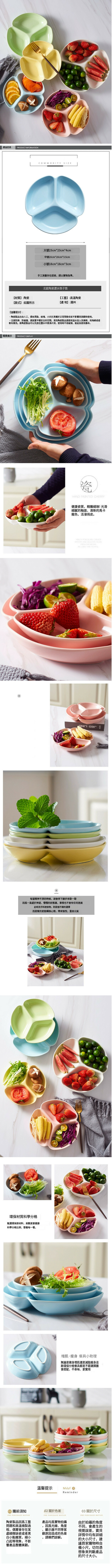 爆款陶瓷三格盤水果盤小吃碟兒童分格餐盤(7寸三格盤(粉色))