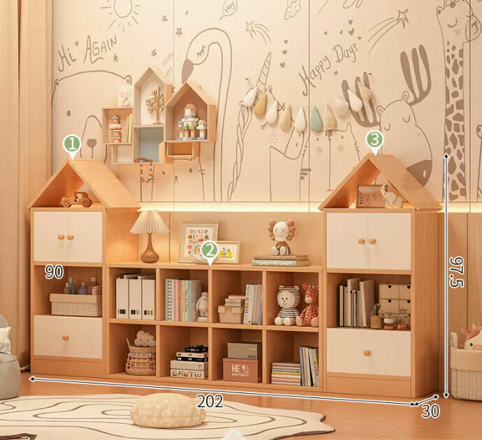 爆款兒童書架(小房子+八格櫃+小房子原木色加白門(組合款))
