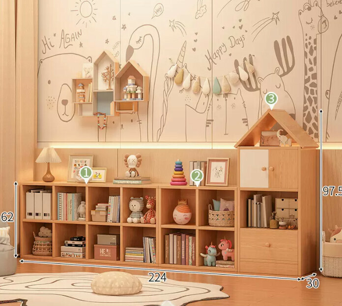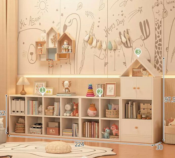 爆款兒童書架(小房子+四格+八格暖白色(組合款))
